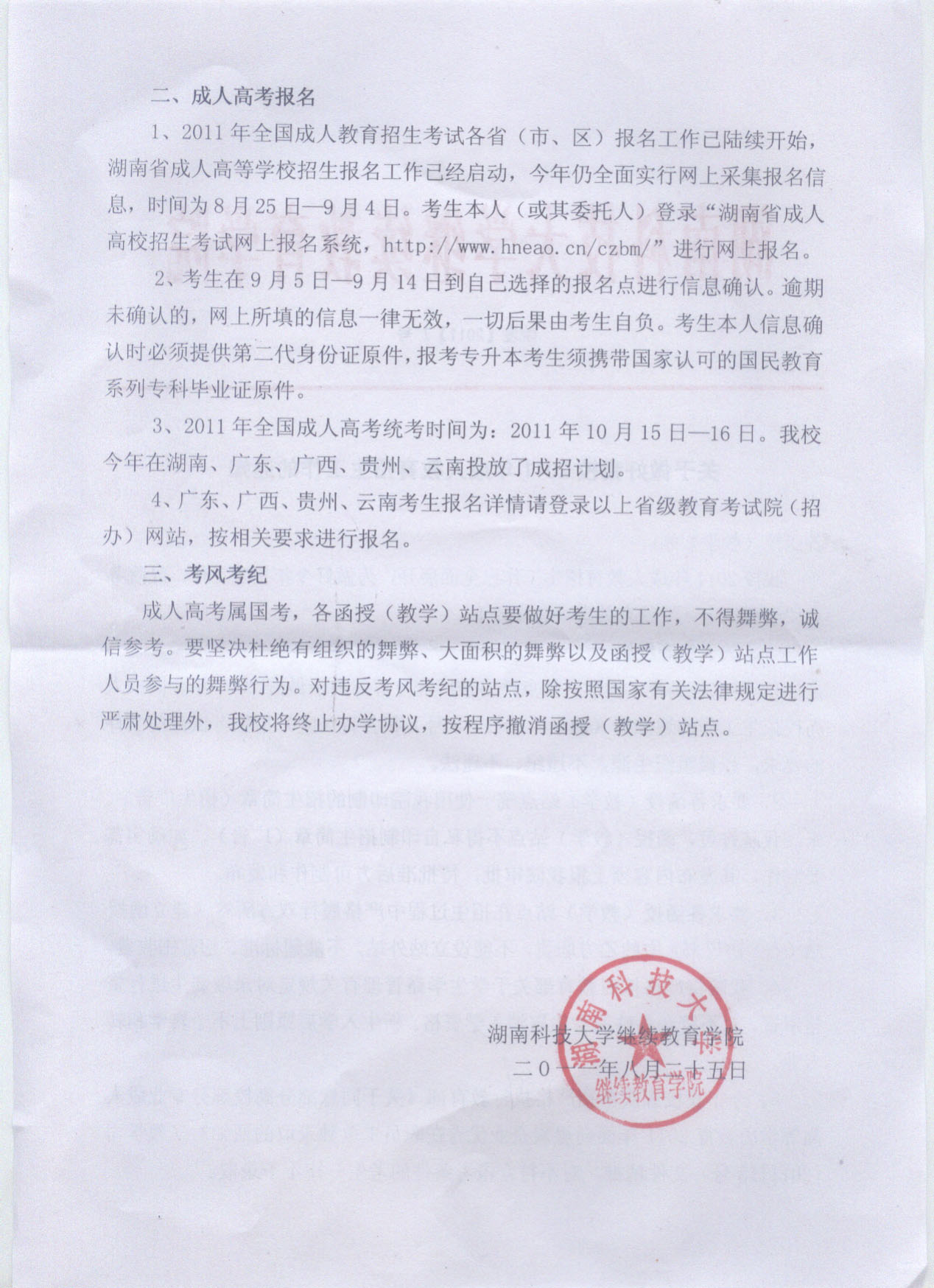 关于做好bv伟德国际体育官方网站2011年成人教育招生工作的通知